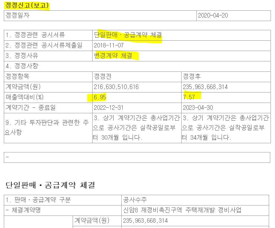 의무 공시 대상은 아니지만 주주의 알권리를 위하여, 혹은 주가부양을 위하여 계약 사항을 알리는 것입니다. 의무공시와 계약공시 모두 계약 조건이 변경되면 정정공시를 해야합니다.